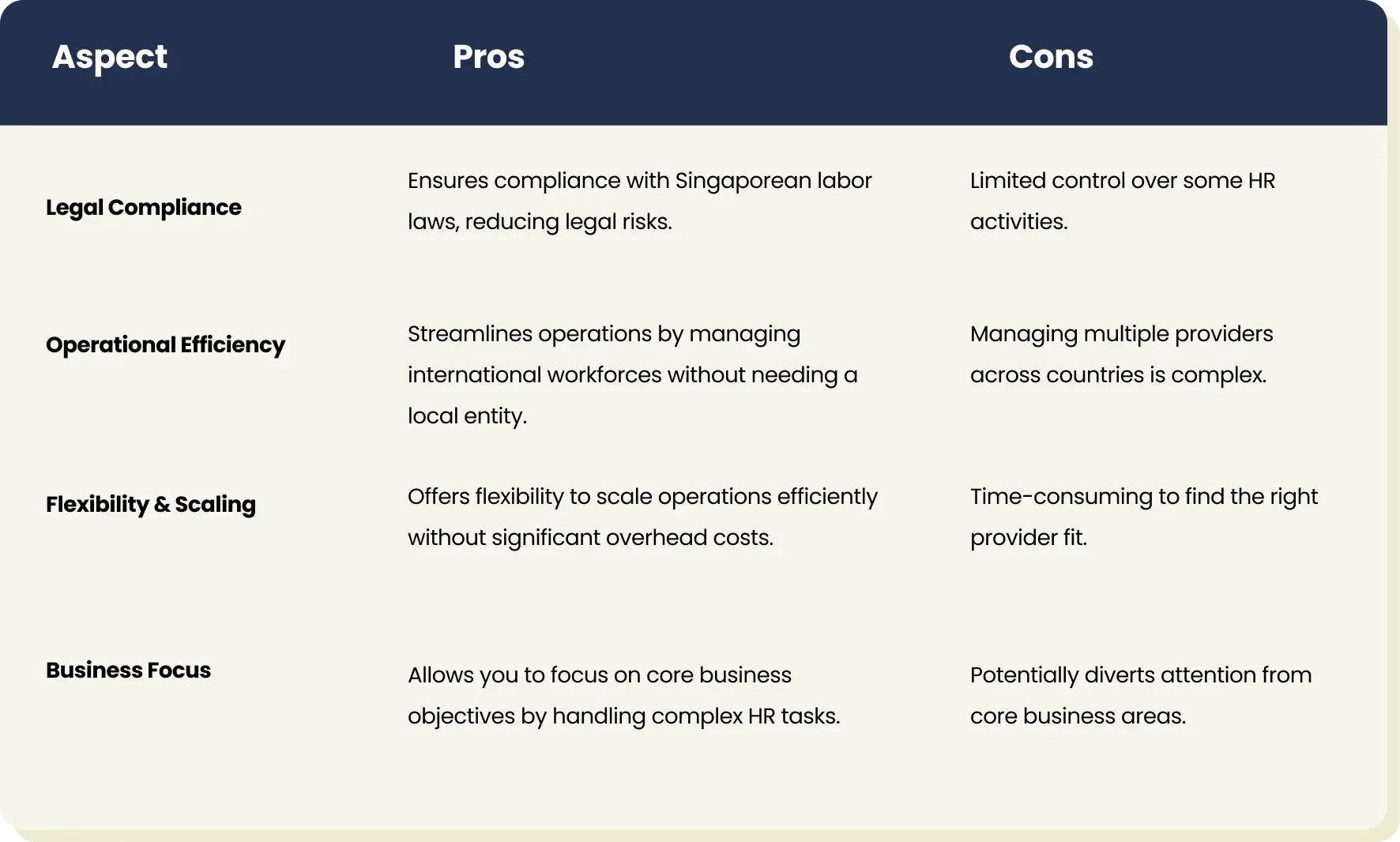 To navigate the complexities of Singapore's regulatory environment, many companies partner with Professional Employer Organizations (PEO) and Employers of Record (EOR). The next section will explore how our PEO/EOR services can benefit your company and why Glints TalentHub is the ideal partner for your expansion into Singapore.
